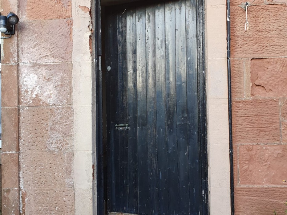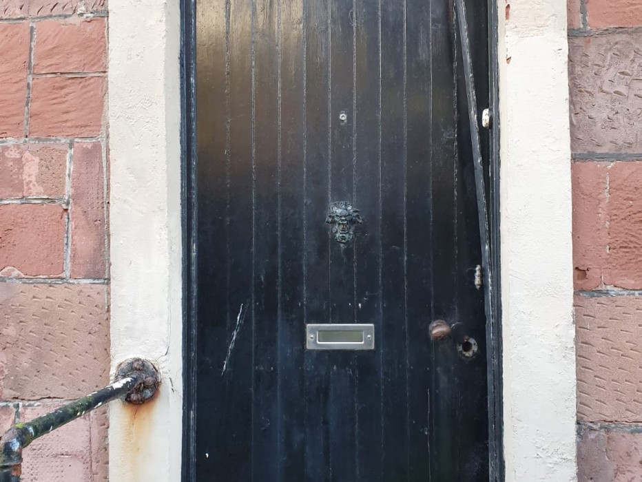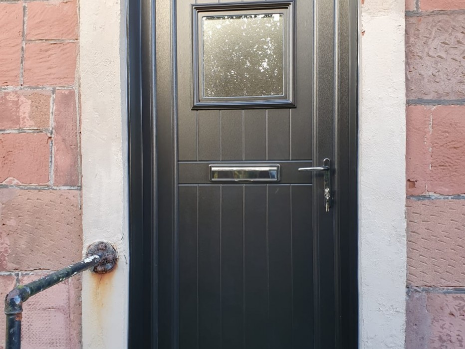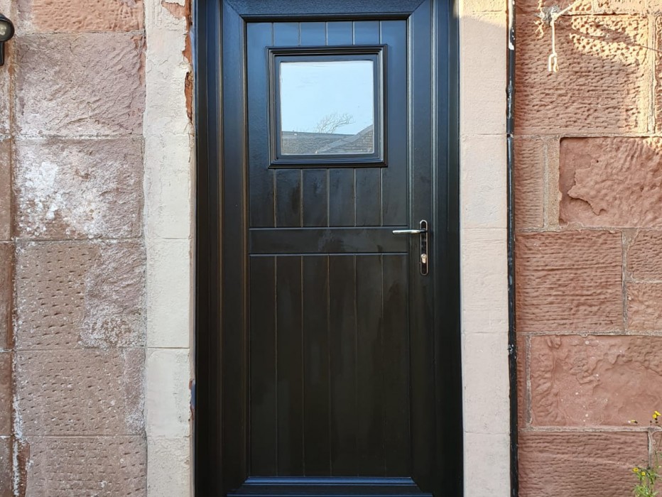A before & after of our grained black pvc doors